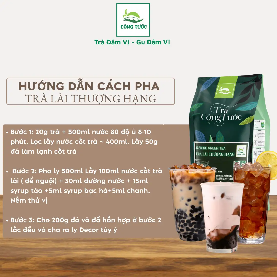 Với vị chát nhẹ nhàng, hậu vị ngọt sâu cuốn hút và hương thơm hoa lài dịu nhẹ, Trà Lài Thượng Hạng Công Tước không chỉ là một thức uống giải khát mà còn là bí quyết làm đẹp, giảm cân và tăng cường sức khỏe từ bên trong. Đây là nguyên liệu lý tưởng cho các công thức trà trái cây detox hay trà đá thanh mát ngày hè.