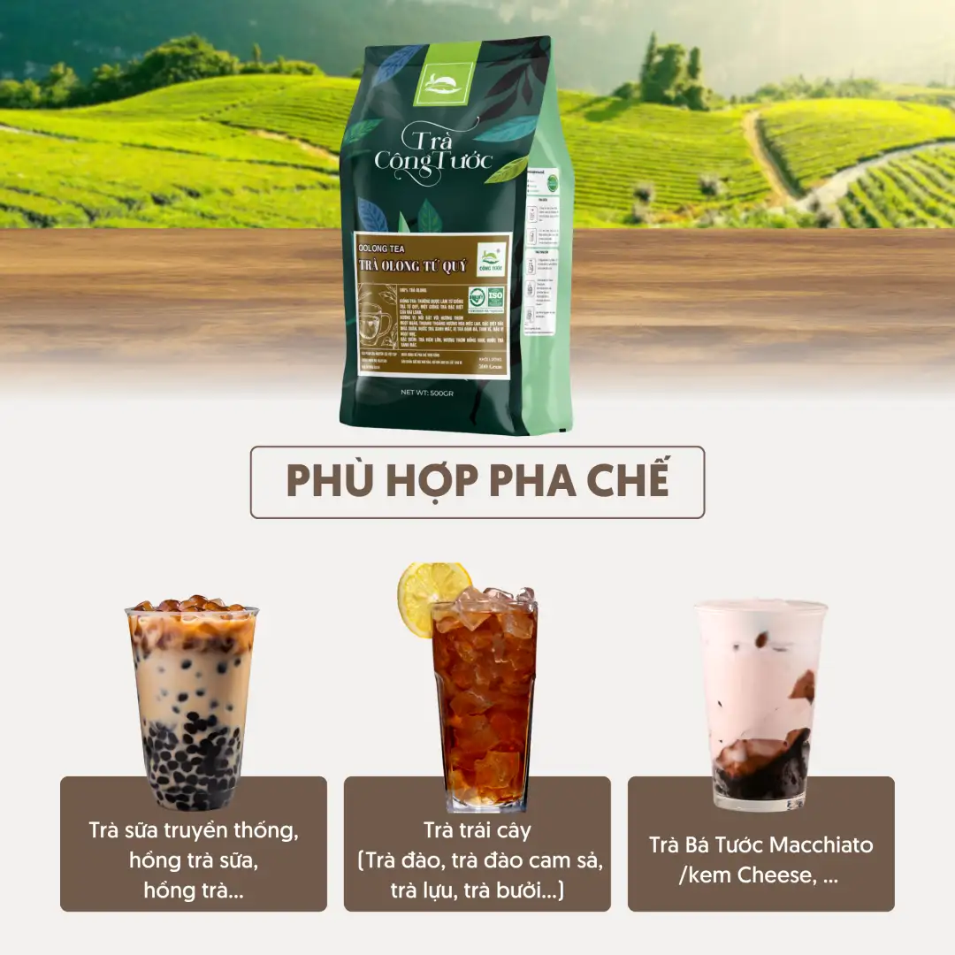 Nếu bạn đang tìm kiếm một loại trà vừa có thể thưởng thức nguyên bản, vừa là nguyên liệu lý tưởng cho các công thức pha chế hiện đại như Cold Brew hay Trà Sữa vị thanh, Trà Ô Long Tứ Quý Nguyên Lá chính là lựa chọn hoàn hảo.